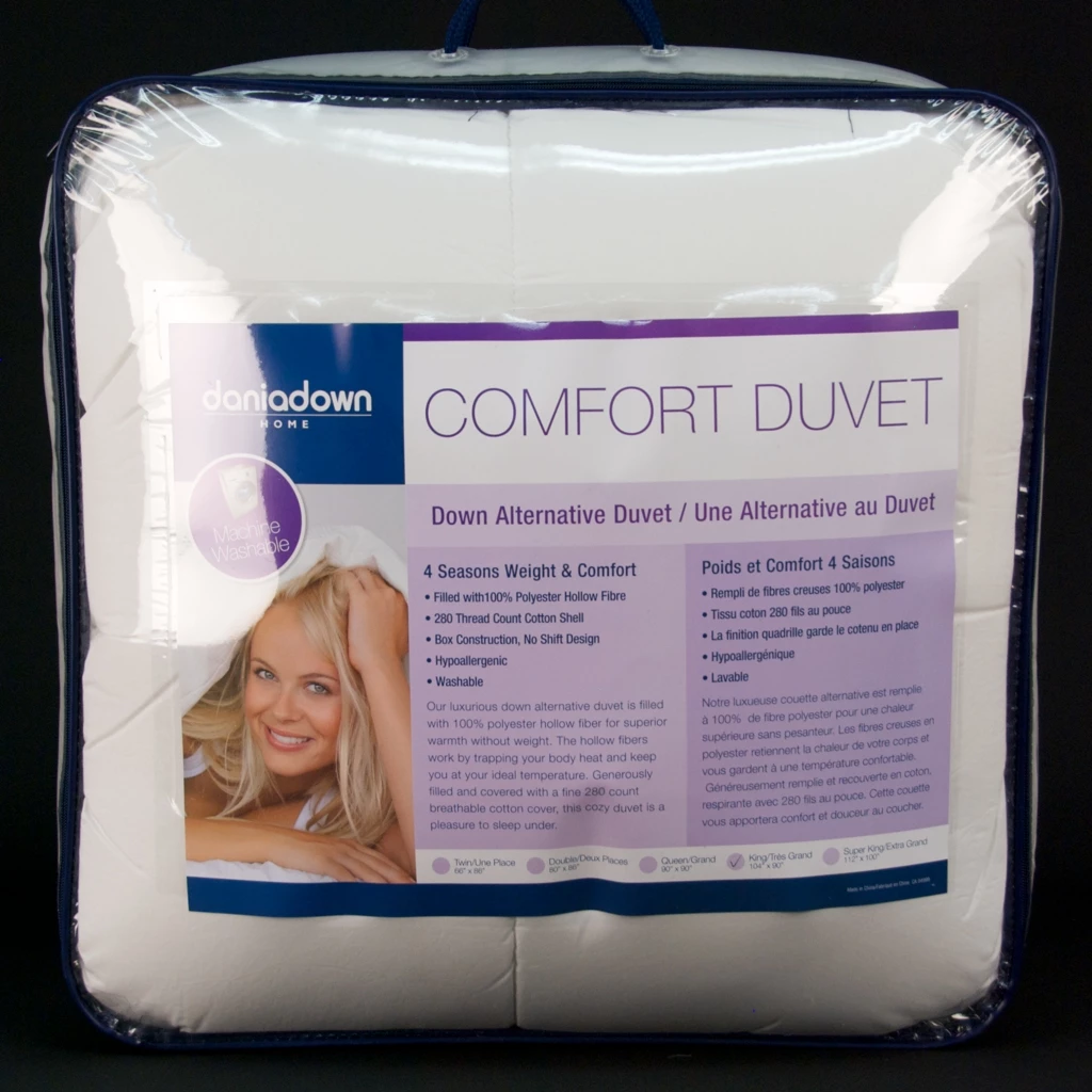 This cozy duvet is generously filled with a hollow fiber synthetic which traps and retains heat in its center  to keep the sleeper warm. The outer covering is made of a fine, high threadcount cotton. Hollow fiber fill traps the sleepers’ heat for excellent insulation. The 100% cotton ticking is both absorbant and breathable for extra comfort.