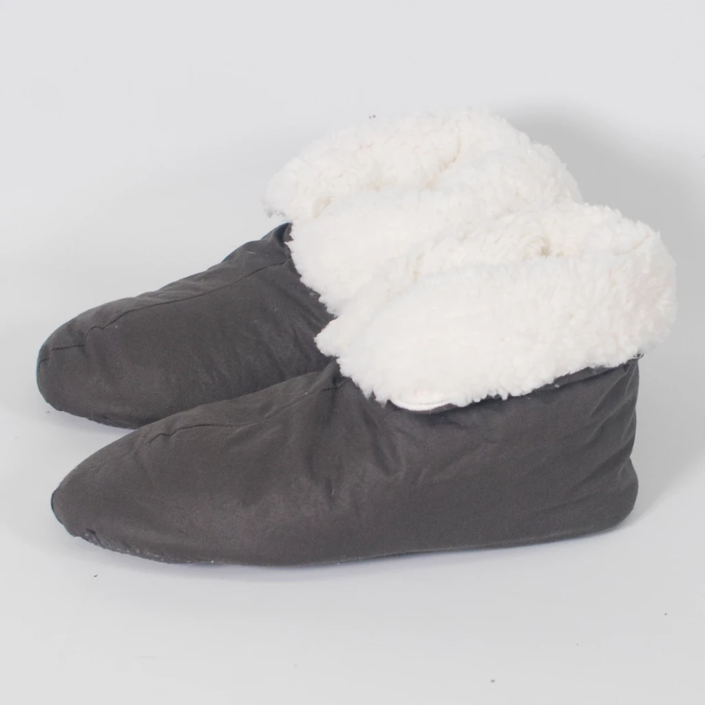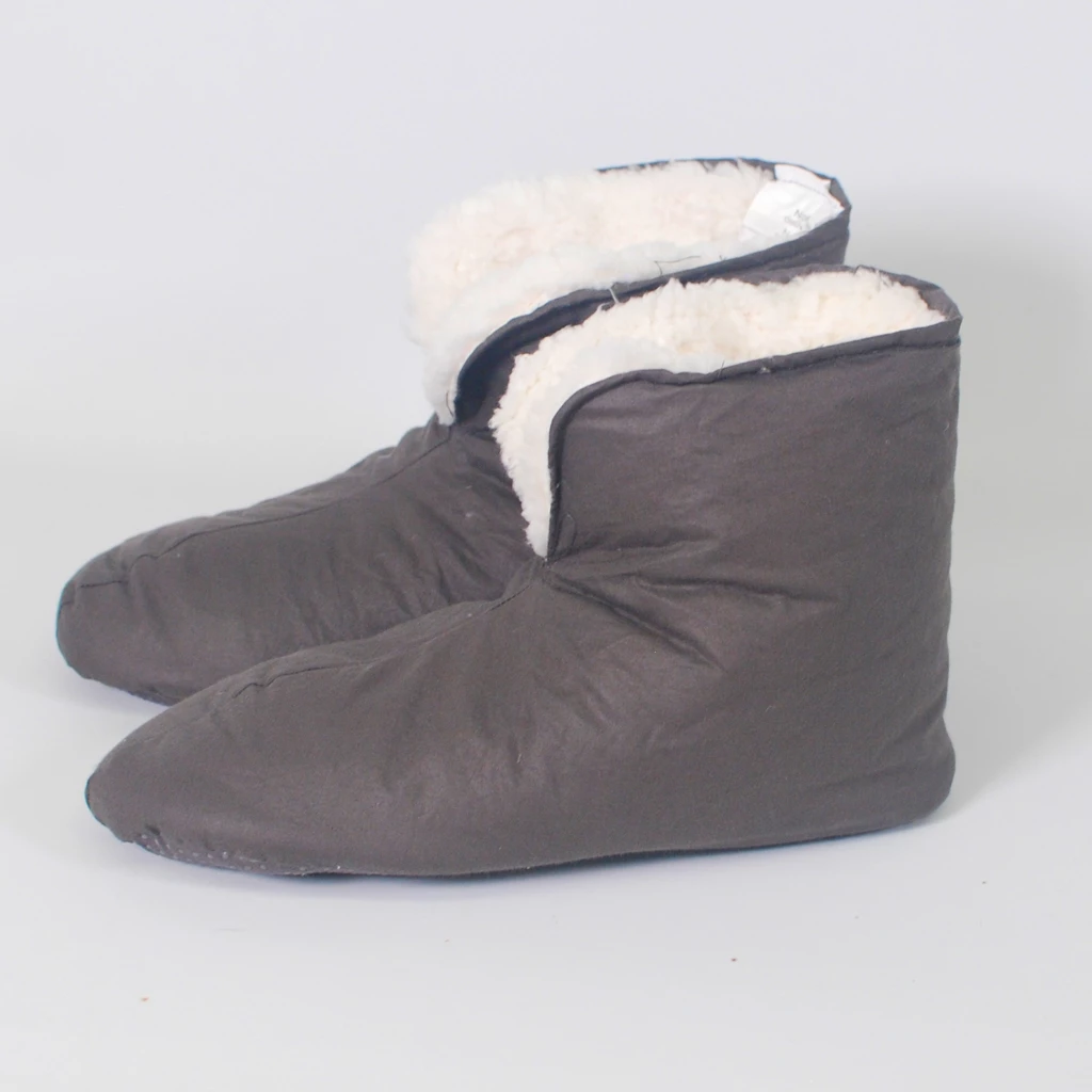 The perfect footwarmer. Lightweight and warm. Fully washable. Non-slip sole. Available in small or large.