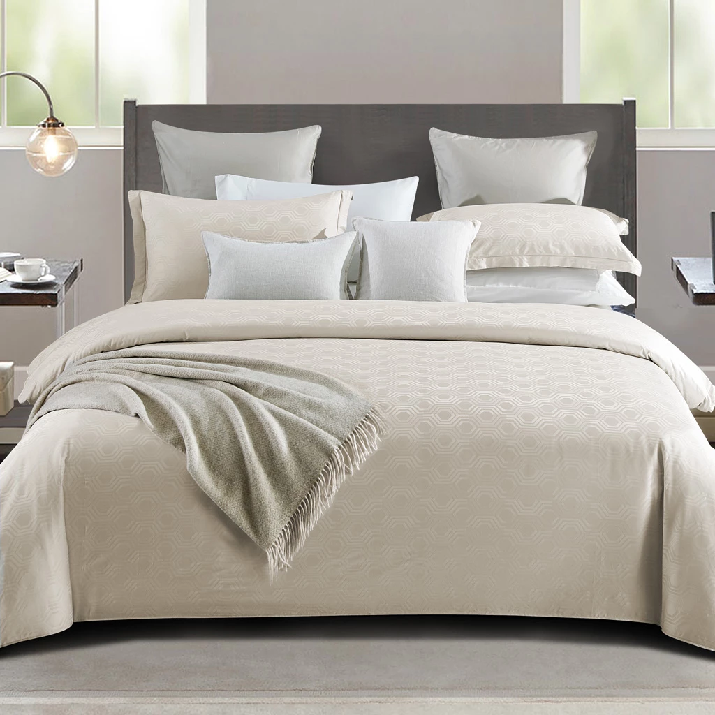 Hex is a tone on tone woven cotton Jacquard with a subtle hexagon pattern in a neutral greige. The duvet cover comes with coordinating shams finished with an elegant satin stitch. Add in colorful and textural accessories to complete your look. Made of 100% combed cotton, the set is soft and breathable and can be machine washed and dried for ease of care.Â