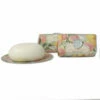 | Glass Dish Soap | Â Oval: 6.25 x 4.75 x .5″ h / 15.9 x 12.1 x 1.3 cm h. | Â Our beautifully decorated, lightweight glass soap dishes were designed specifically to hold either our large bath soap bars or boxed single soaps. Hand washable and individually boxed. |