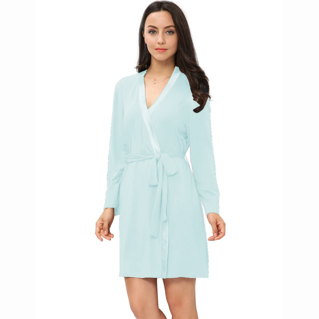 Our bamboo sleepwear is made from pure eco- friendly bamboo viscose with a touch of spandex for breathability and ease of fit. Our generous robe is a delight to wear providing coverage without bulk or weight. The length falls to mid-thigh. Dropped shoulders accommodate most body sizes. It is trimmed in an elegant matching satin edge.