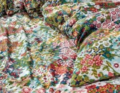 Our Monet cover and pillowcase set is a painterly floral paradise. Rich shades of greens, teal, and bordeaux blend to create a lush landscape of colorful impressionist flowers. The pillowcases are adorned with a shell button closure and the duvet cover has a zipper opening along one side.It is printed on our fine, 300 thread count, 100% combed cotton for softness and comfort.