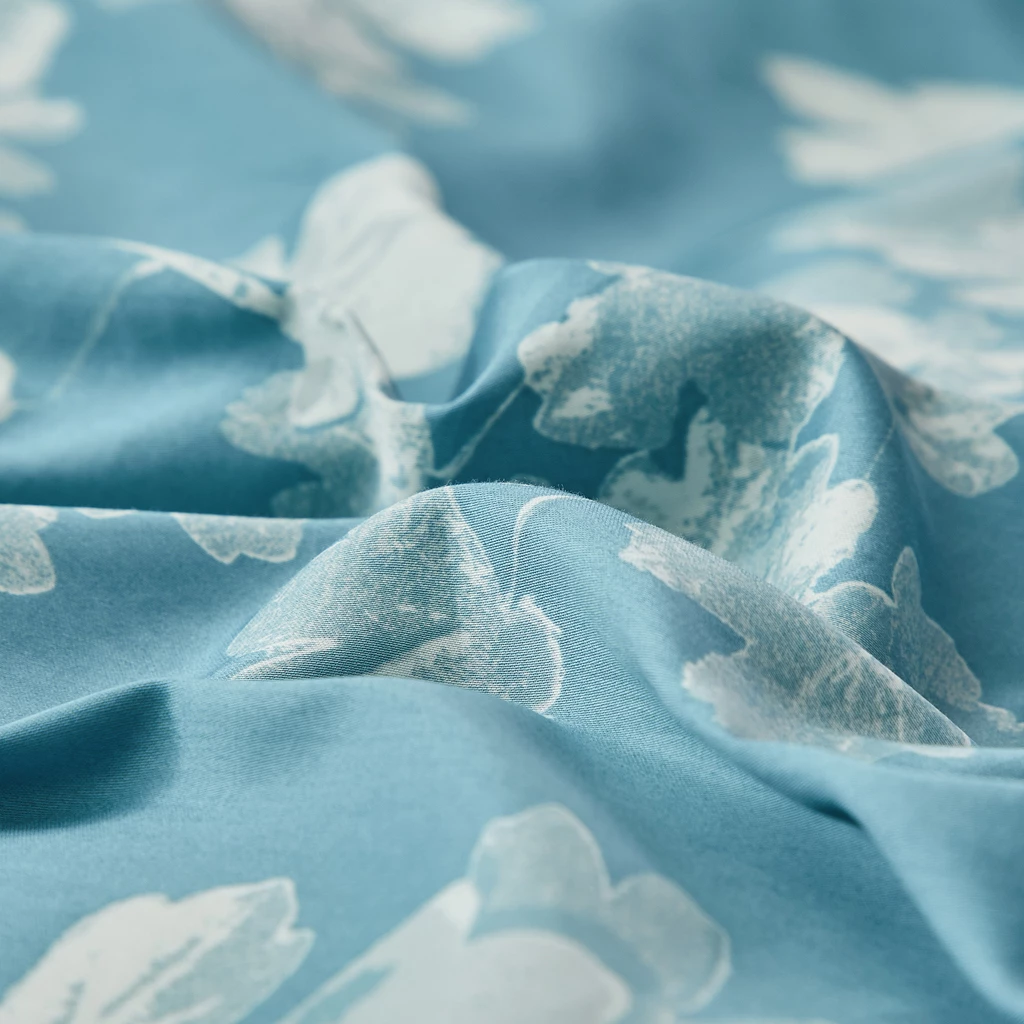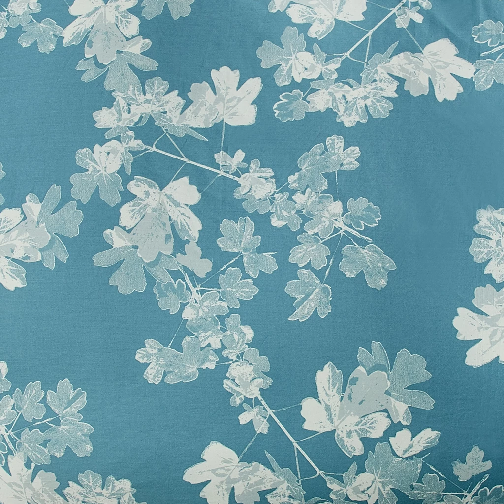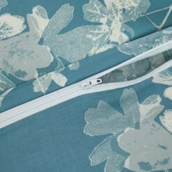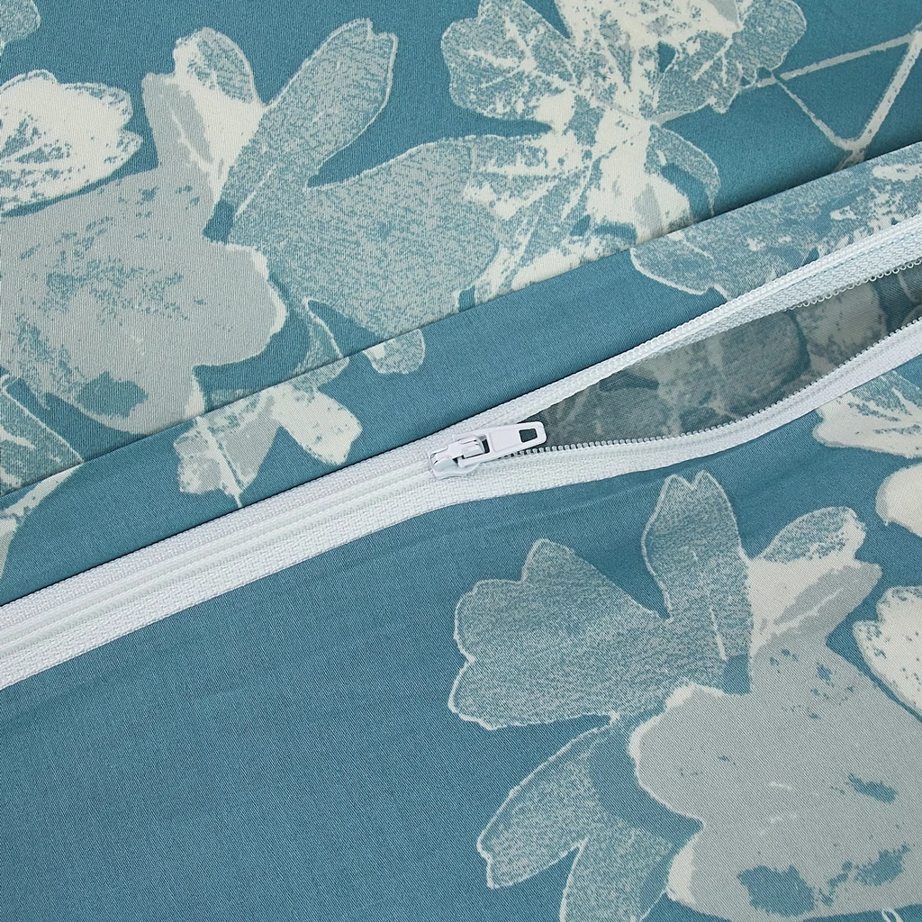 - Our Oakville duvet cover and pillowcase set features a delicate leaf pattern in creams and the palest soft green on a fresh teal background. Monochromatic in its look, it coordinates with most bedroom decors adding both color and style. It is printed on a luxuriously soft 300 count sateen for comfort and breathability.Â