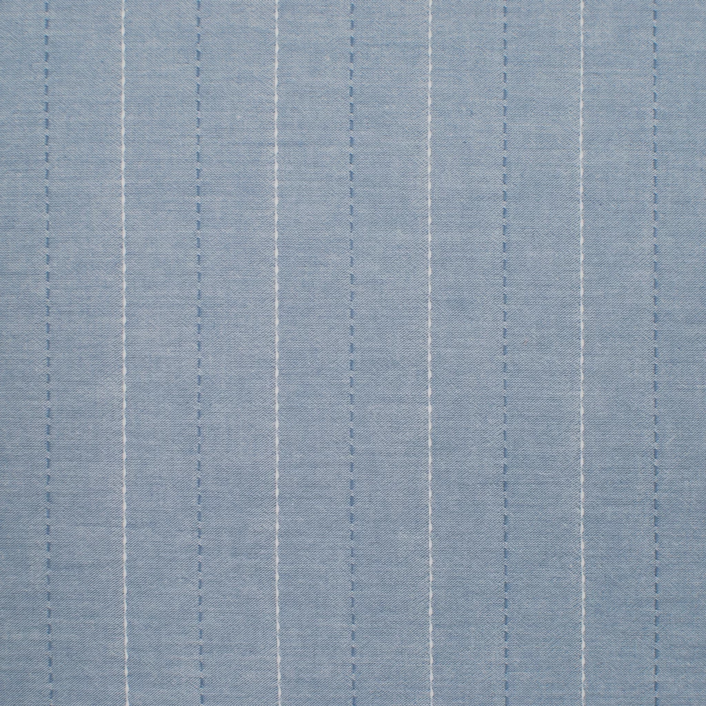 Our Denim Pinstripe duvet cover and sham set is woven with dyed yarns creating a subtle intermittent woven stripe. The chambray fabric has soft color variations in the woven yarns giving it a natural look. It is made of 100% combed cotton for breathability and comfort. The set has a slight teal undertone and coordinates with our Persian Blue Velvet cushions. Machine washable and dryable for ease of care. Â The duvet cover has a 60â zipper opening along one side and interior corner ties to keep the duvet in place.