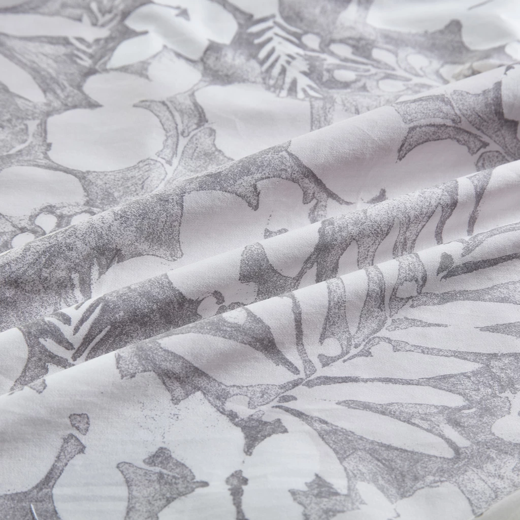 Shadow Grey is a modern duvet cover set depicting shadows of botanical leaves on a watercolor taupe-grey background. This is a sophisticated monochromatic print, adding subtle pattern to your room. The set is printed on a 300 thread count 100% combed cotton for softness, comfort, and breathability. We have coordinated it with Star White linen pillowcases and Pink linen cushions to add texture and keep the look fresh. The set is machine washable for ease of care; plus inside corner ties on the duvet cover ensure your duvet stays in place.