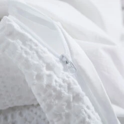 Our Solene White duvet cover and sham set is woven in a ladder waffle adding textural interest to your bed. The neutral tones are sophisticated giving a modern feel to your décor. Both the waffle front and the 200 count percale reverse are made of 100% combed cotton for comfort and breathability, The set is stonewashed giving it a soft hand feel and subtle color variations. Machine washable and dryable for ease of care. The cover has a large 60” hidden zipper opening along one side.