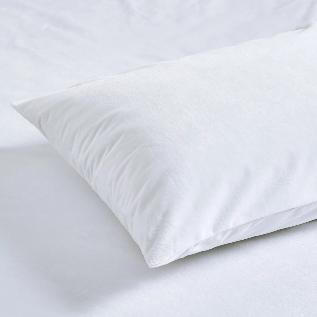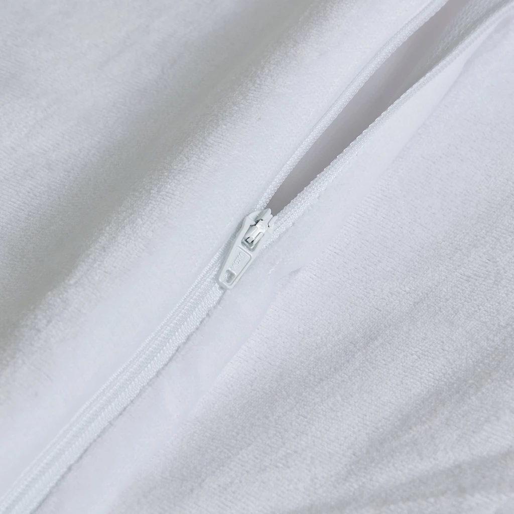 No mites! Waterproof! Breathable! Protect your pillow investment Our waterproof, breathable, pillow protector offers the ultimate in protection with the comfort of an absorbent cotton velour fabric.